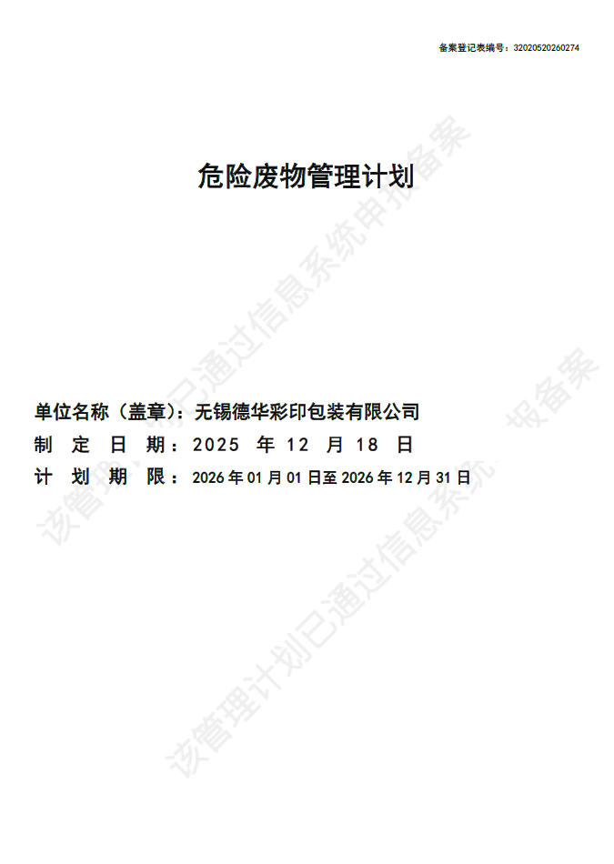 危险废物管理计划2026
